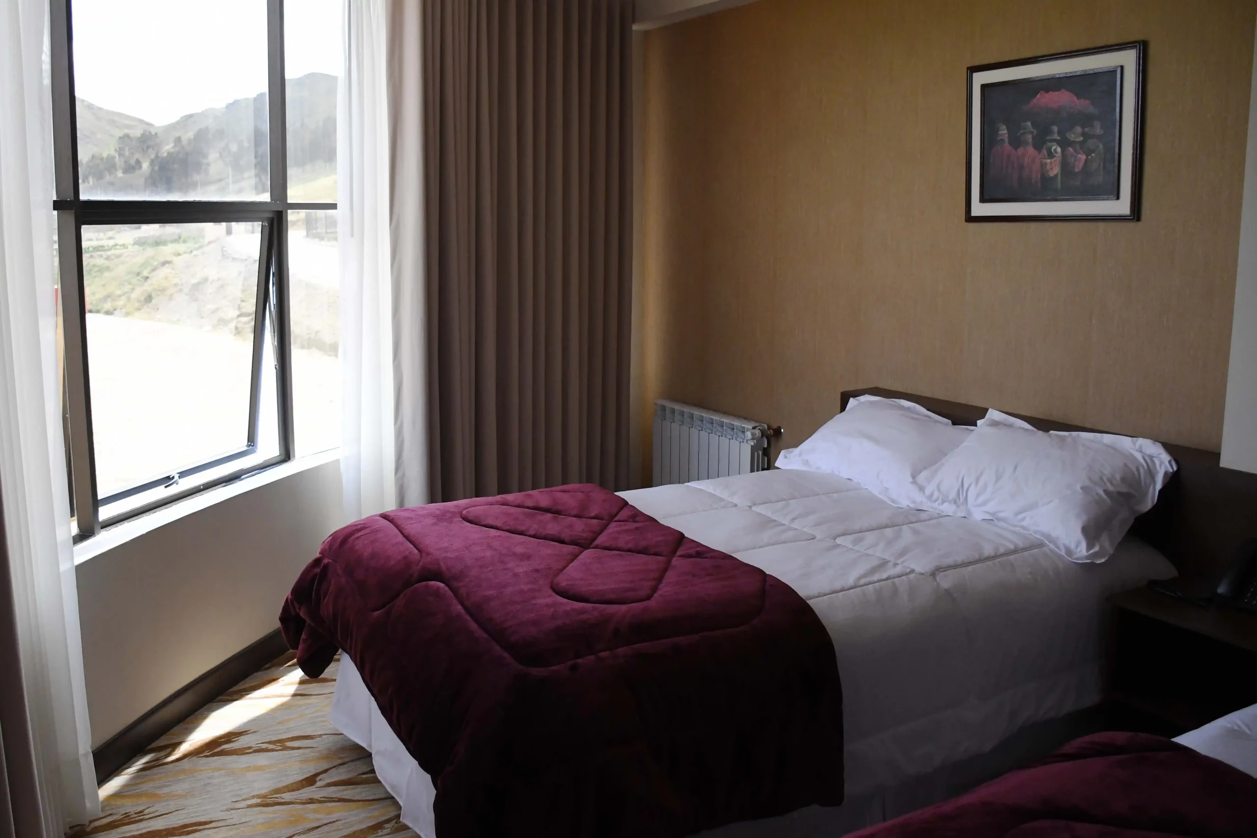 Luxury Double Room Suite has a comfortable queen size or twin bed, a sitting area, separate desk and bathroom with walk-in rain dance shower or a bath and shower and modern art and neutral colors.